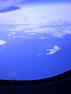 ふと窓から外を見たら北極の上を飛んでいたので一面氷!!
