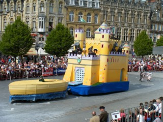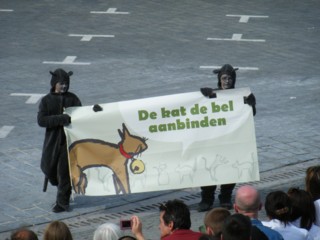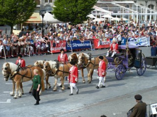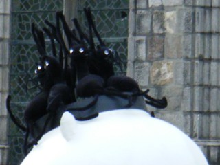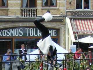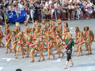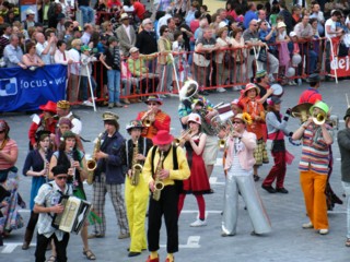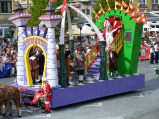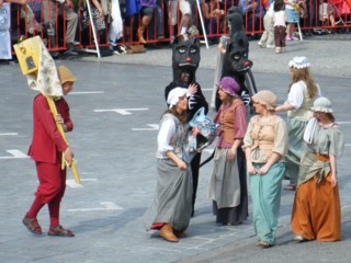 広場の前を通り過ぎたパレードは、実はまだ街の外で続いているので投げる時刻までまだ1時間ほどありました(苦笑)
