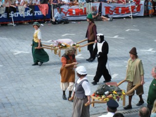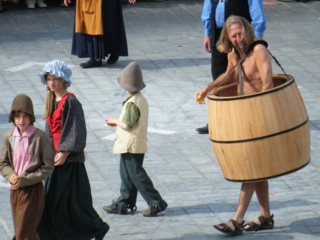 ↑ブタとか、イノシシとか、チキンとかを運ぶ人々と…裸の樽男(笑)