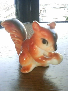 お店のウィンドウに細々並べられてる中に見つけたリスの置物。