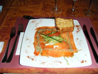 ・前菜のサーモン=ものすんごいシイタケの味