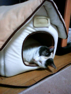 あと、寒くなってきたのでにゃんこ用のクッションハウス出したら…