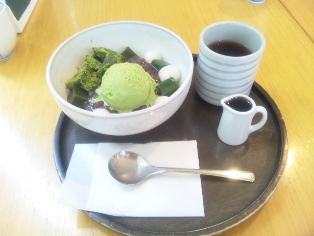 抹茶アイスはけっこう甘いんですが、普通&抹茶のくずきりとわらび餅と白玉と小豆が甘さ控え目だから丁度いいのです。
