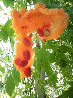 鮮やかな山吹色と言うかオレンジに染まったイボイボ物体が…ぱっくり割れて中から真っ赤に染まった種が飛び出てくる…。