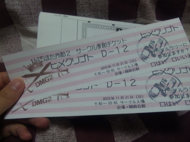 前に見た悪夢でサークル入場のチケット忘れてゆみこさんに土下座するとかあったのでここで先に渡すことにした。
