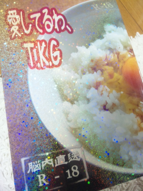 写真素材のたまごかけごはんにイラストを入れてもらって、角丸くして、星のホログラムPPとかw