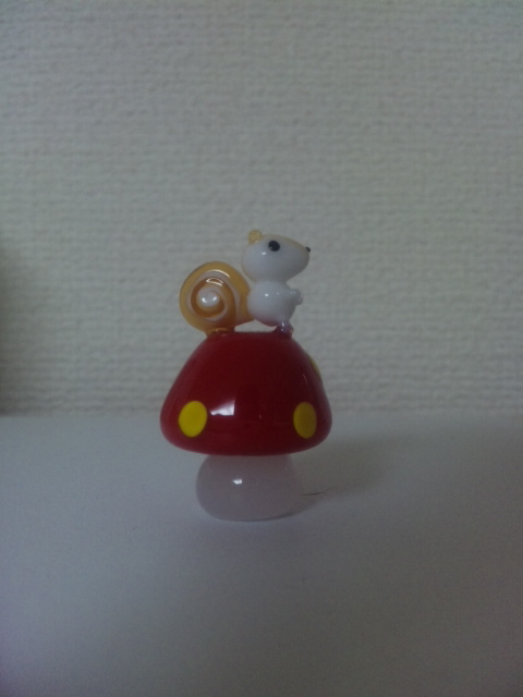 きのこに乗ったガラスのリス発見!!