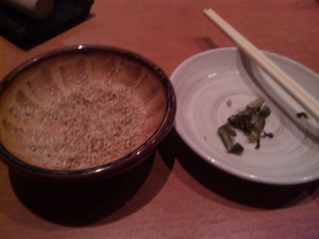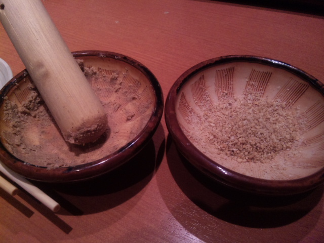 注文をすると、まず小さなすり鉢と白ゴマが出てきた。
