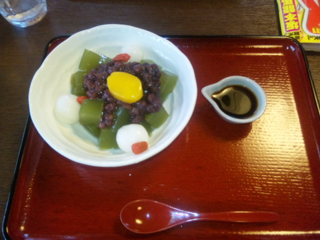 でもちょっと角度変えると空晴れてるから、こりゃ通り雨だねってことになって、甘味を食べつつ更にお店に居座ることに。